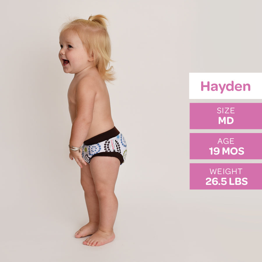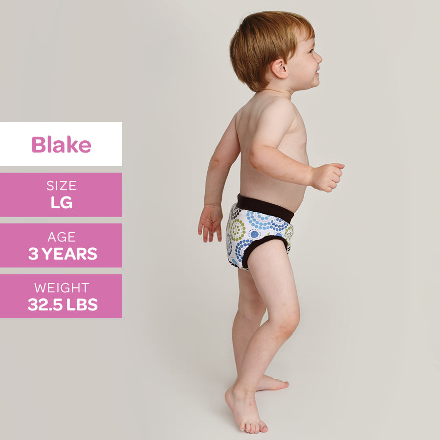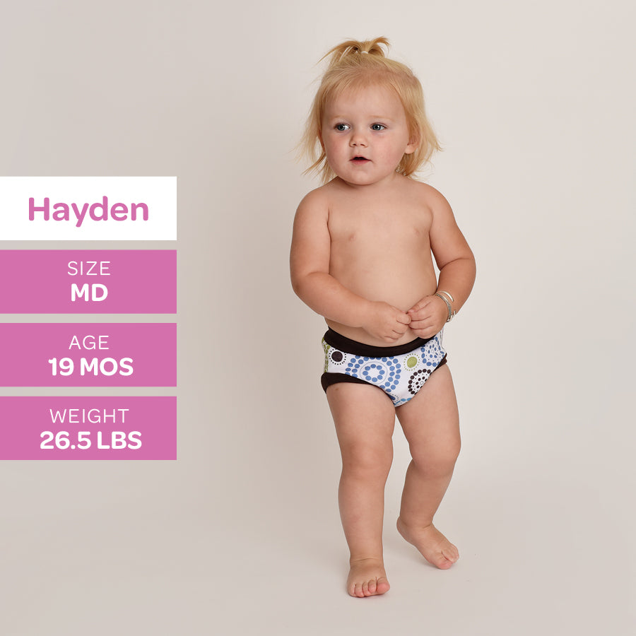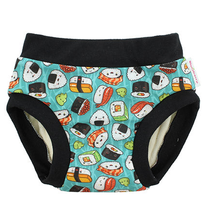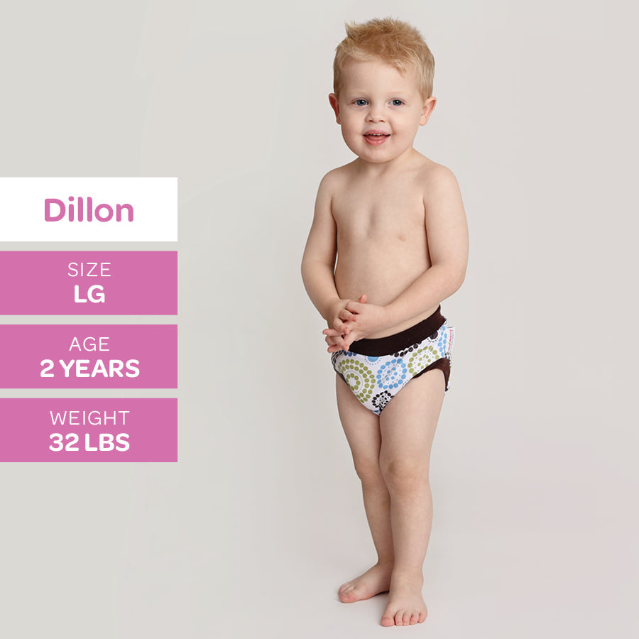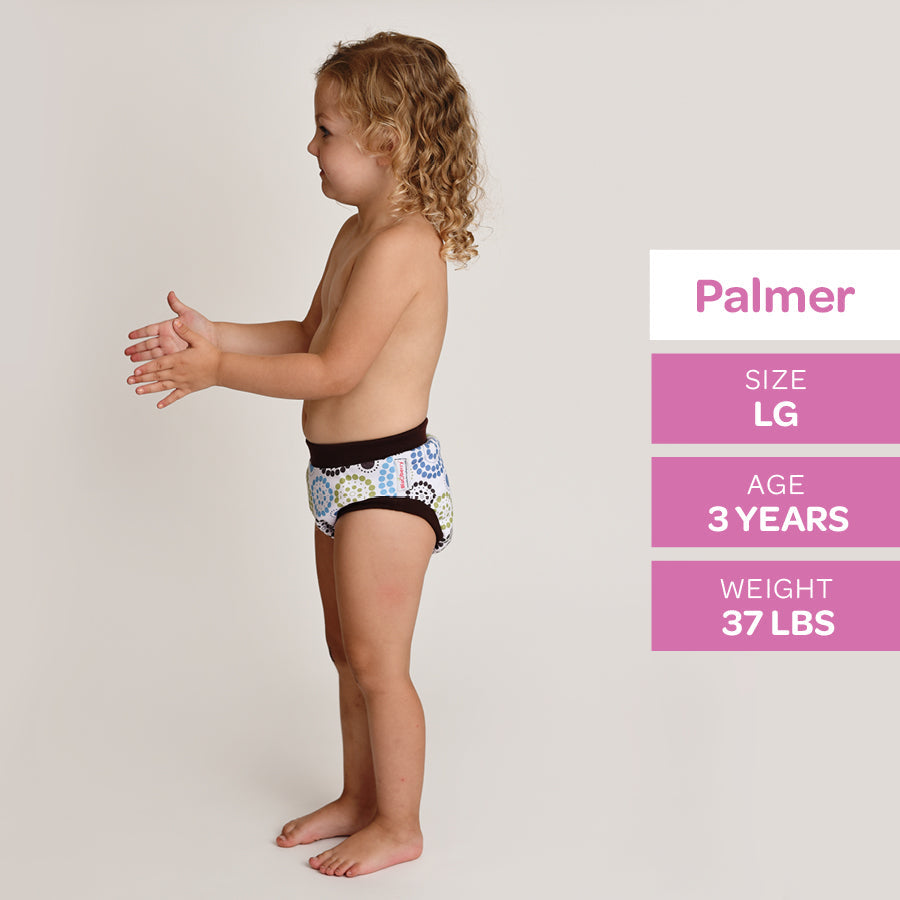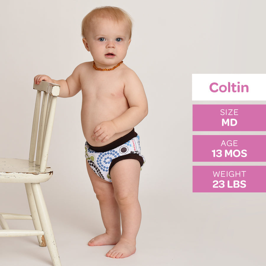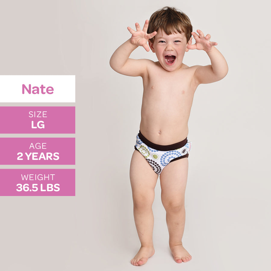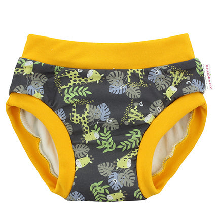 With an inner lining made with cotton velour, a hidden layer of super-absorbent microterry and PUL, these training pants will do the job of catching small accidents during the day.